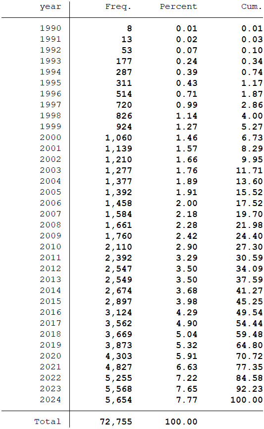 样本选择:全部A股1990-2024年数据