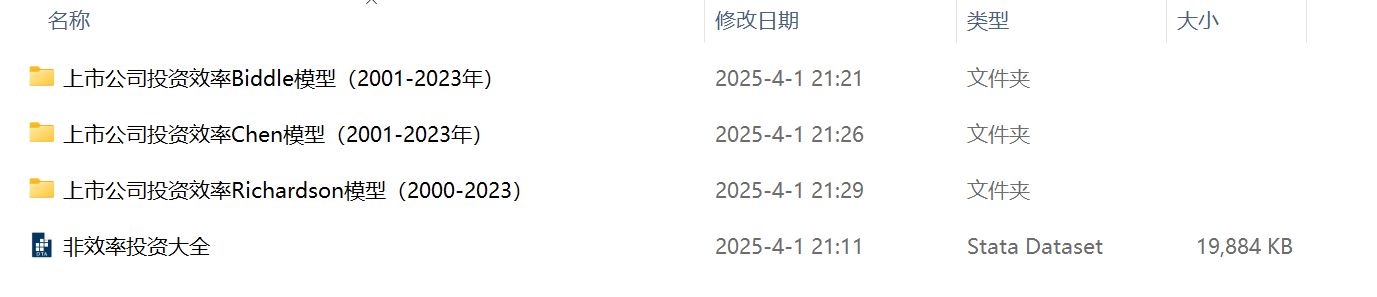 1、数据源名称:上市公司-投资效率、非效率投资数据测算+dofile