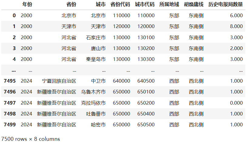 1、数据源名称:光绪三十三年-地级市电报局数据