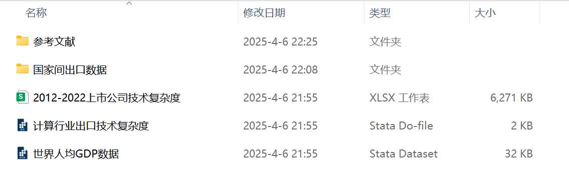 本分享数据首先利用国家出口数据以及世界人均 GDP 数据计算出行业出口技术复杂度,然后参考高翔和袁凯华(2020),利用企业全要素生产率和全要素生产率计算出上市企业的出口技术复杂度