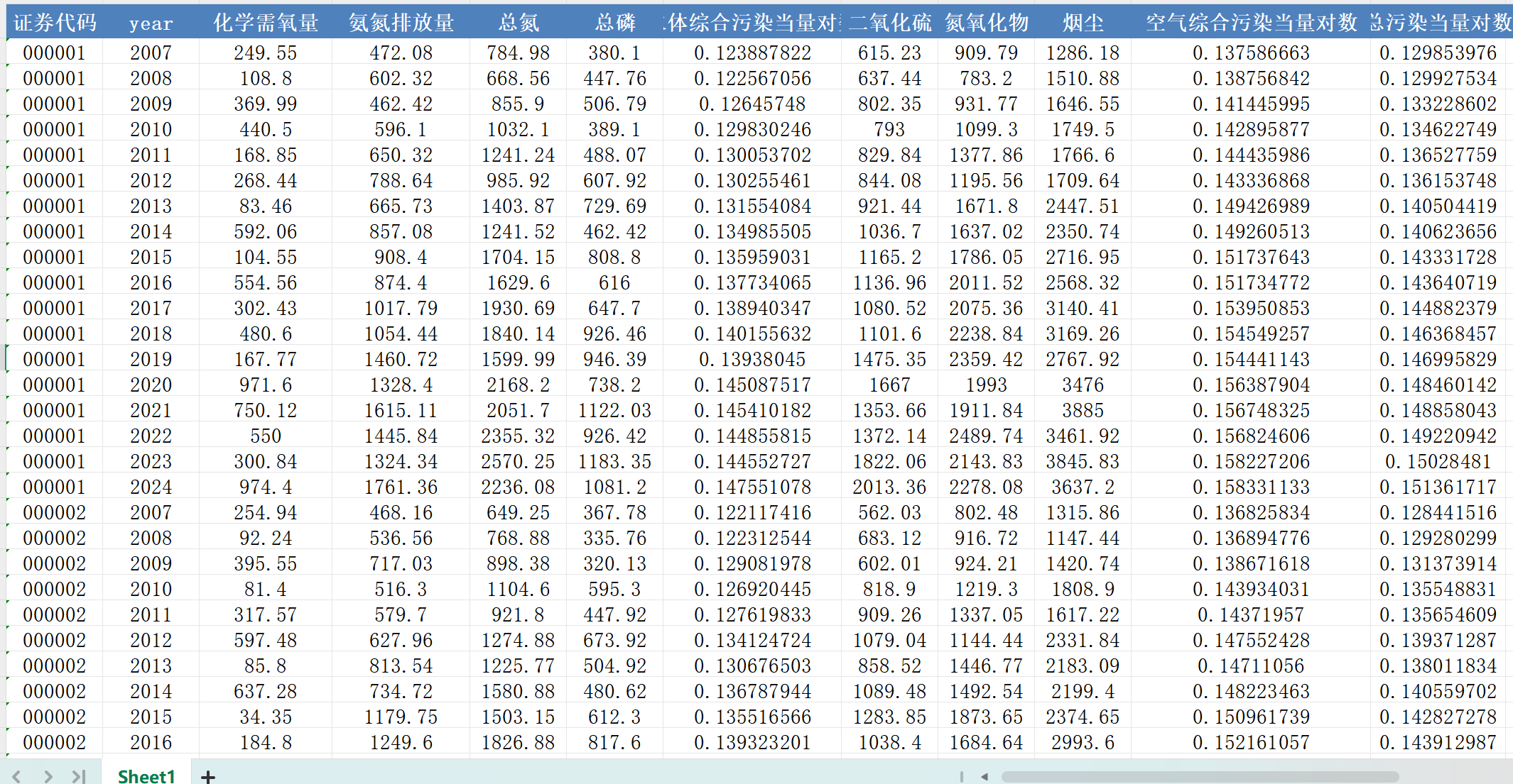 【更新2024年】上市公司污染物排放数据2007-2024年