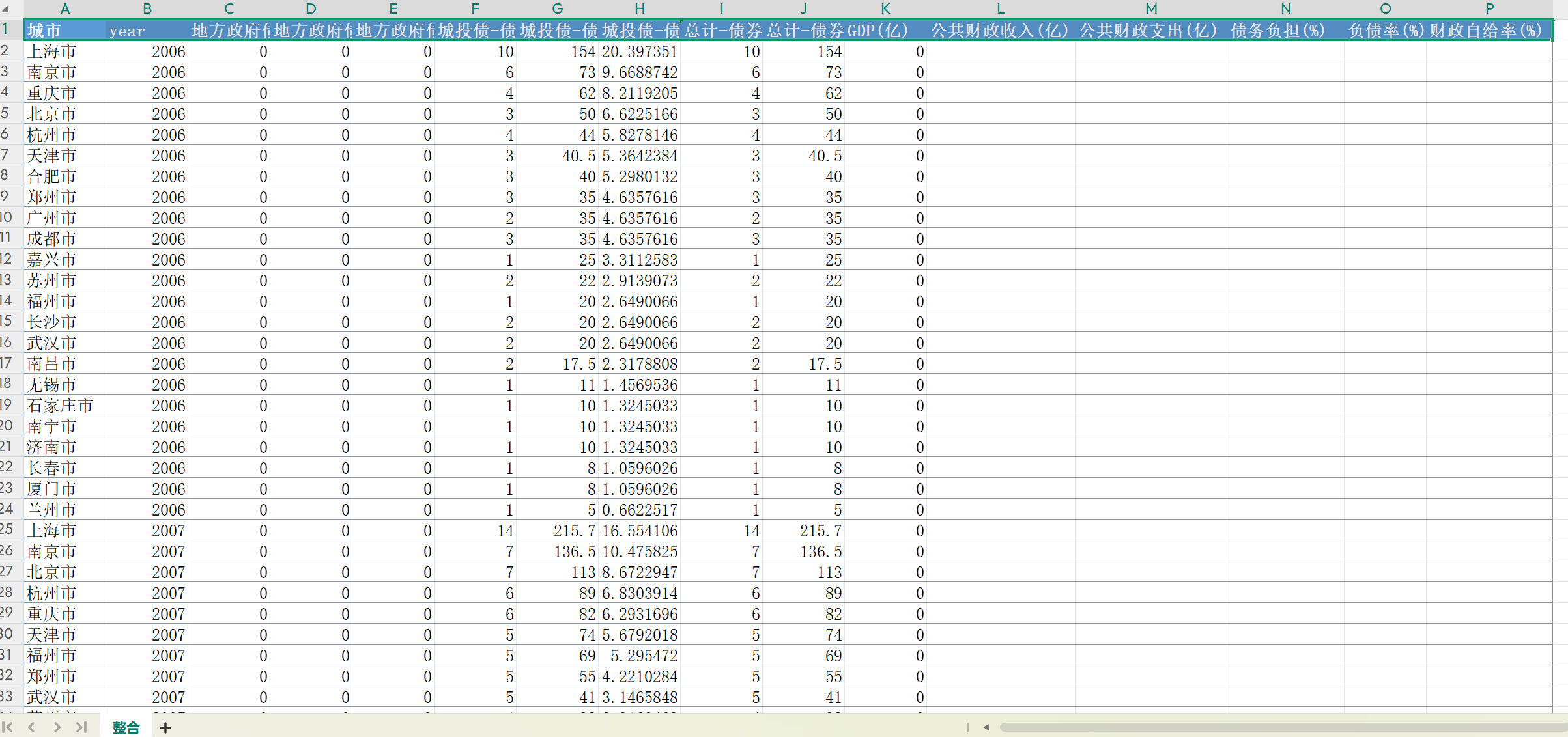 1、数据源名称:中国各省/地级市-地方债务余额相关数据