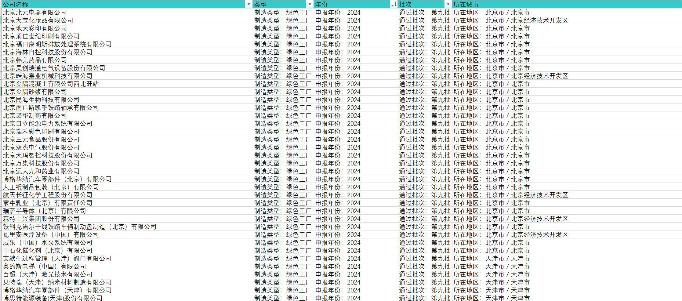 区域跨度:中国所有绿色工厂名单