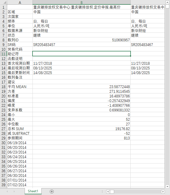 重庆碳排放权交易中心:重庆碳排放权:定价申报:最高价 重庆碳排放权交易中心:重庆碳排放权:定价申报:最低价 重庆碳排放权交易中心:重庆碳排放权:定价申报:成交均价 重庆碳排放权交易中心:重庆碳排放权:成交数量:定价申报 重庆碳排放权交易中心:重庆碳排放权:成交数量:成交申报 重庆碳排放权交易中心:重庆碳排放权:成交数量:累计 重庆碳排放权交易中心:重庆碳排放权:成交金额:定价申报 重庆碳排放权交易中心:重庆碳排放权:成交金额:成交申报 重庆碳排放权交易中心:重庆碳排放权:成交金额:累计 重庆碳排放权交易中心:国家核证自愿减排量:定价申报:最高价 重庆碳排放权交易中心:国家核证自愿减排量:定价申报:最低价 重庆碳排放权交易中心:国家核证自愿减排量:定价申报:成交均价 重庆碳排放权交易中心:国家核证自愿减排量:成交数量:定价申报 重庆碳排放权交易中心:国家核证自愿减排量:成交数量:成交申报 重庆碳排放权交易中心:国家核证自愿减排量:成交金额:定价申报 重庆碳排放权交易中心:国家核证自愿减排量:成交金额:成交申报