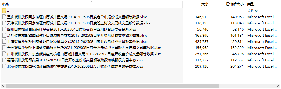 北京上海广州深圳福建四川重庆天津碳排放权配额自愿减排交易2013-202508日度数据