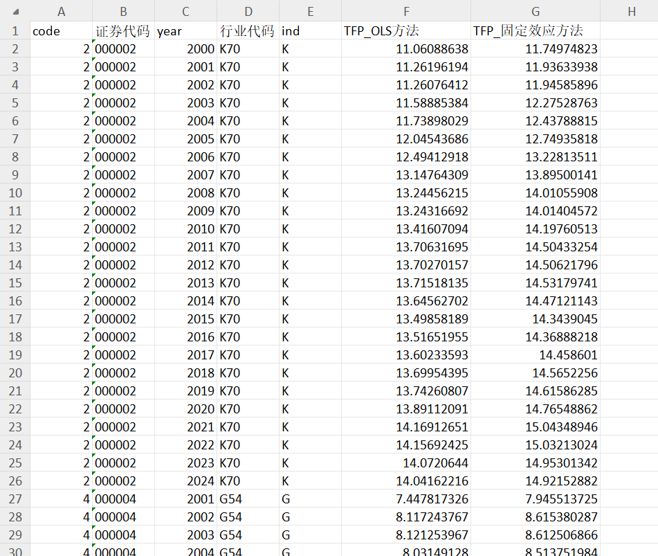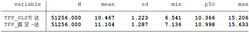 对各变量均取对数后进行OLS回归/固定效应回归,从而得到全要素生产率指标(TFP)
