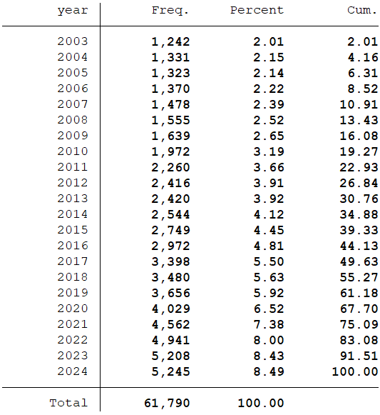 样本选择:全部A股2000-2024年数据(“股权性质”数据是从2003年开始,数据起点选择为2003年)