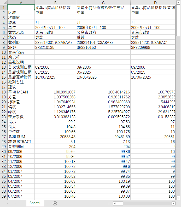 义乌小商品景气指数价格指数出口2006-202505箱包纺织品玩具首饰五金电子器件钟表眼镜文化办公用品等