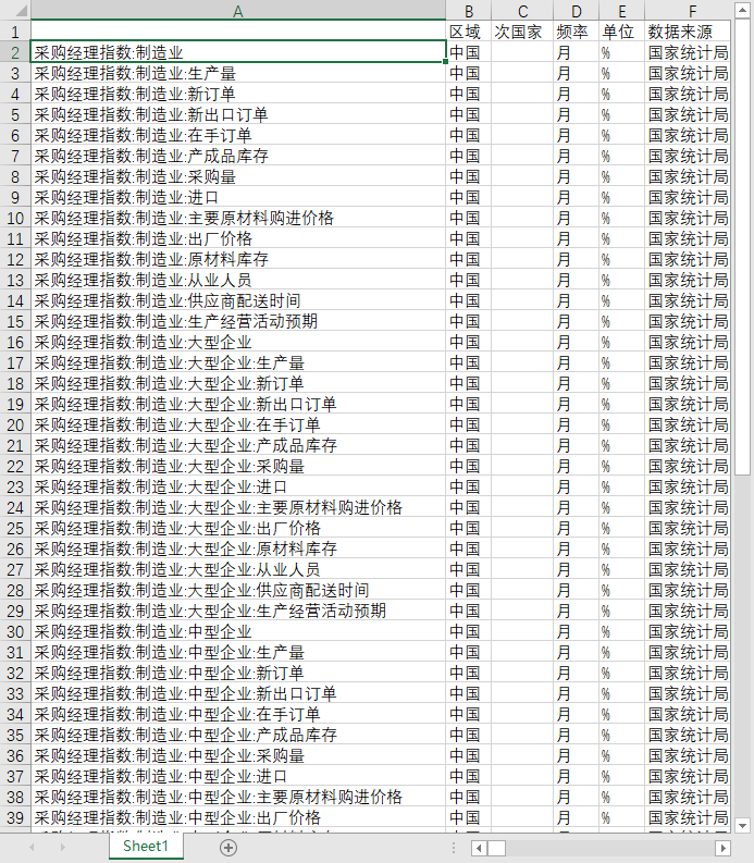 采购经理指数:非制造业:商务活动 采购经理指数:非制造业:新订单 采购经理指数:非制造业:新出口订单 采购经理指数:非制造业:在手订单 采购经理指数:非制造业:存货 采购经理指数:非制造业:投入品价格 采购经理指数:非制造业:销售价格 采购经理指数:非制造业:从业人员 采购经理指数:非制造业:供应商配送时间 采购经理指数:非制造业:业务活动预期 采购经理指数:非制造业:商务活动:国有企业 采购经理指数:非制造业:商务活动:集体企业 采购经理指数:非制造业:商务活动:股份合作企业 采购经理指数:非制造业:商务活动:有限责任公司 采购经理指数:非制造业:商务活动:股份有限公司 采购经理指数:非制造业:商务活动:私营企业 采购经理指数:非制造业:商务活动:外商及港澳台商投资企业