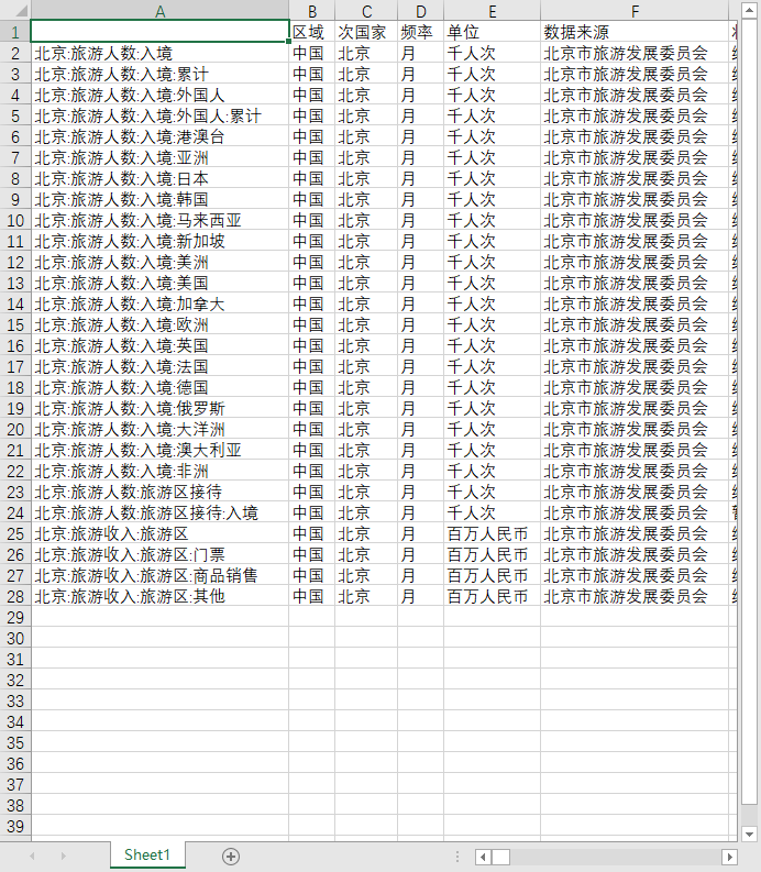 旅游业北京外国人入境人数出境人数出国全球世界各国地区2008-202506月度旅游区门票商品销售2008-2024月度数据
