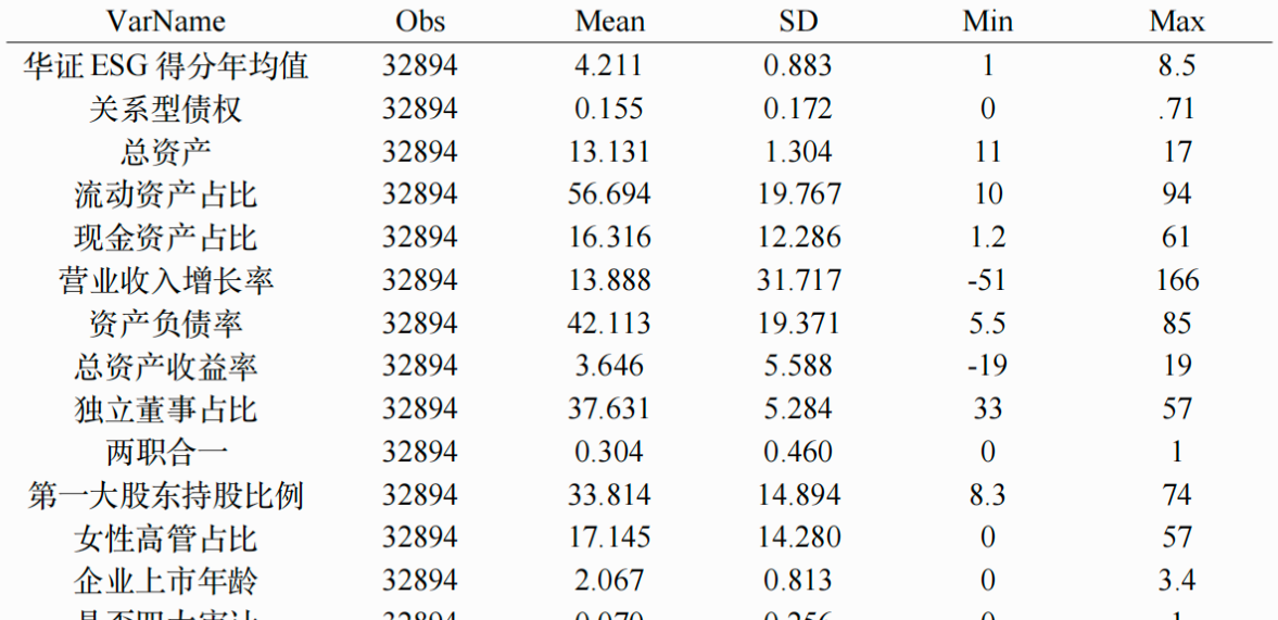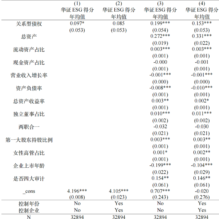 是否四大审计 | 华证ESG得分年均值 | 关系型债权 |