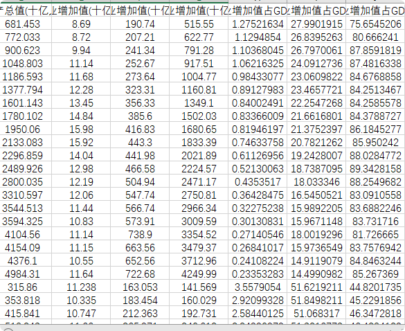 4、数据指标:国内生产总值、第一产业增加值、第二产业增加值、第三产业增加值、第一产业增加值占GDP比重(%)、第二产业增加值占GDP比重(%)、第三产业增加值占GDP比重(%)、产业结构水平、产业整体升级、产业结构高级化。