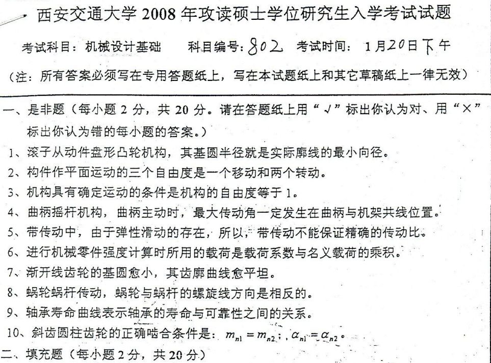 西安交大西安交通大学考研真题机械设计基础
