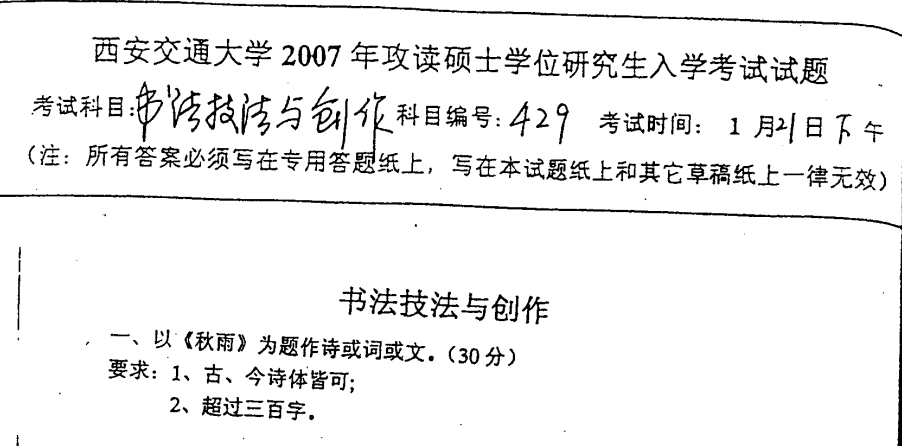 西安交大西安交通大学考研真题(无答案)书法技法与创作06 07.pdf