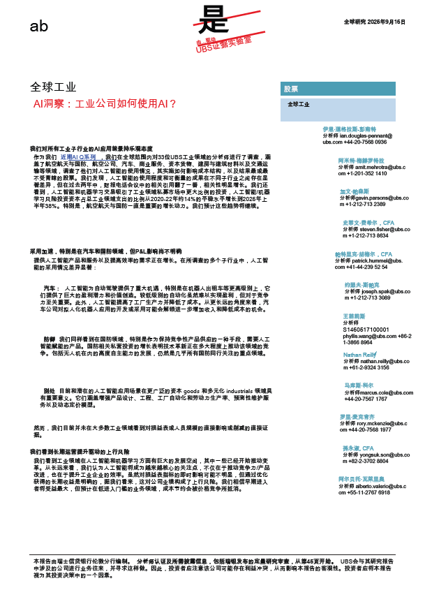 英文【瑞银证券】UBS-全球工业人工智能洞察工业公司如何使用人工智能【53页】.pdf