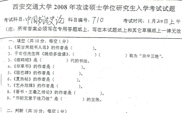 西安交大西安交通大学考研真题中国书法史论