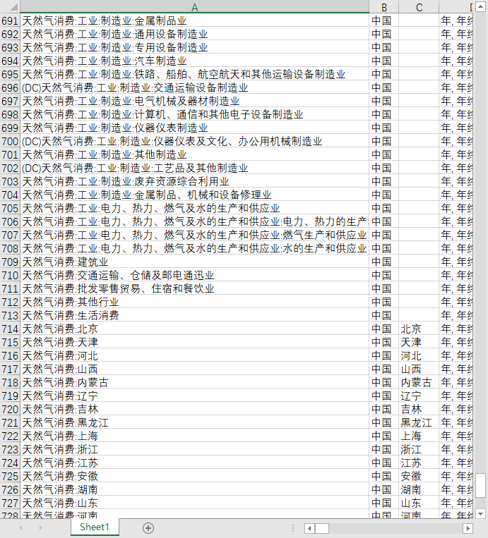 (DC)天然气消费:工业:制造业:仪器仪表及文化、办公用机械制造业