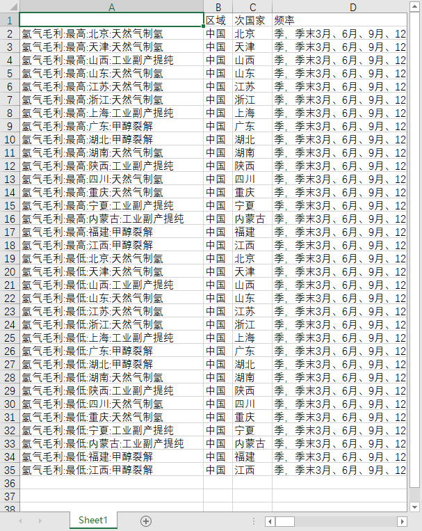 全国新能源氢气毛利甲醇裂解天然气煤制氢分省份地区氢能源产能和产量氢气进出口每公里运费2020-202506季度数据