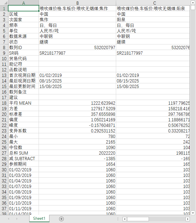 中钢联全国喷吹煤价格日度2019-20250815无烟煤焦作阳泉永城攀枝花晋城等