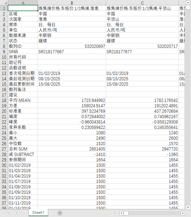 中钢联全国炼焦煤价格日度2019-20250815平顶山菏泽鸡西乌海肥煤邯郸瘦煤韩城古交七台河等