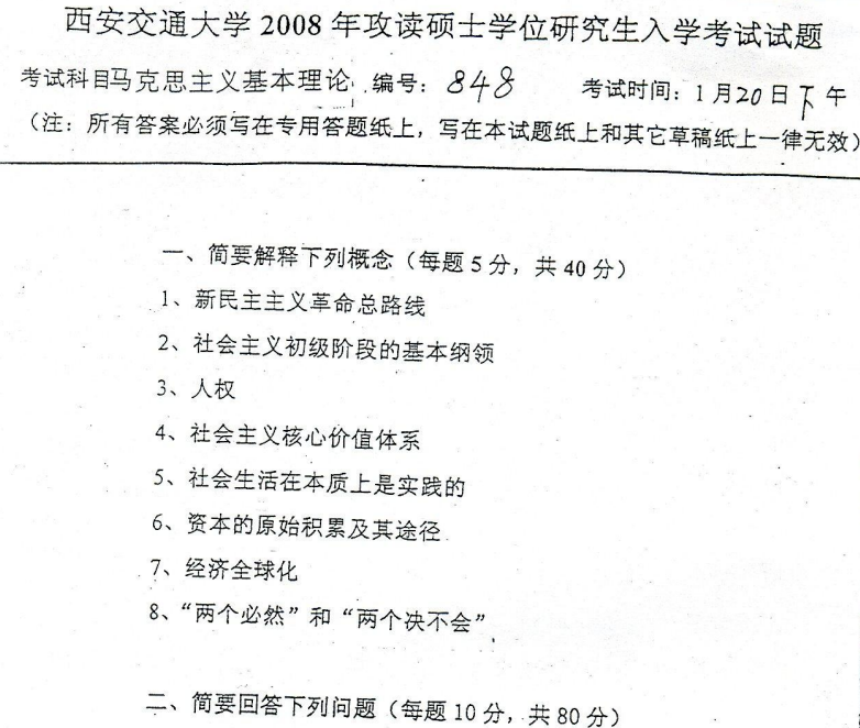 西安交大西安交通大学马克思主义基本理论考研真题无答案07 08