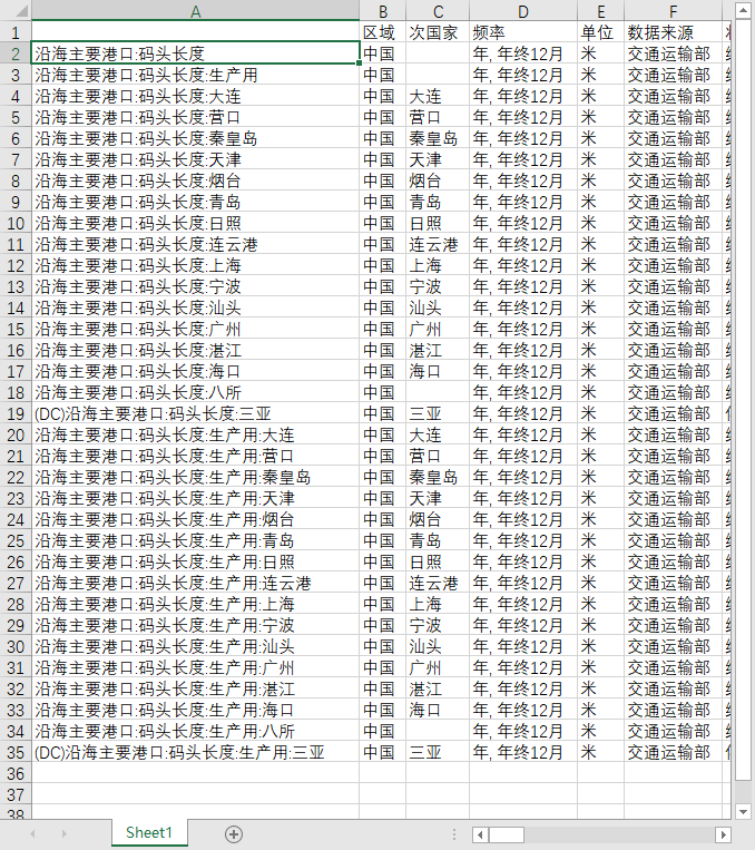 沿海主要港口:码头泊位:生产用:万吨级及以上:广州