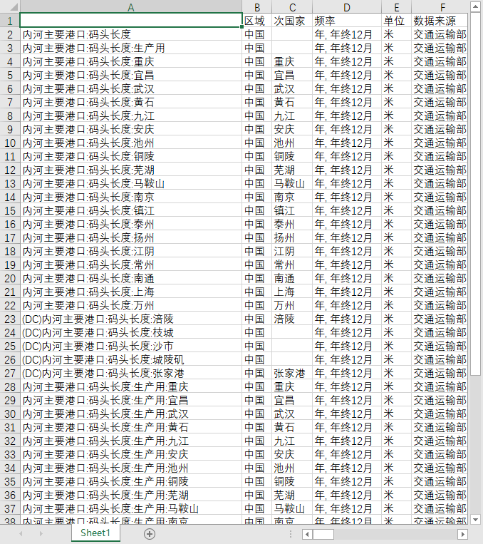 (DC)内河主要港口:码头长度:生产用:城陵矶