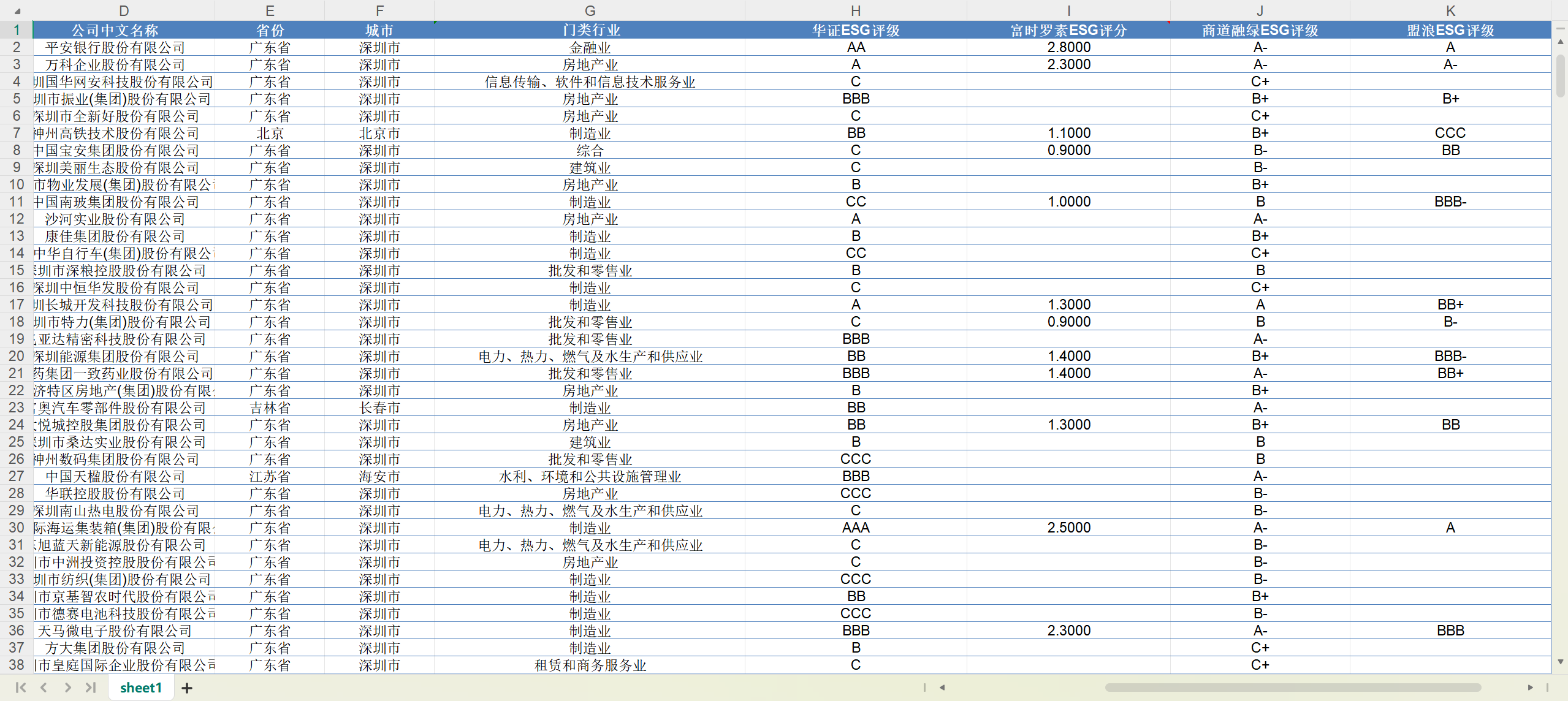 1、数据源名称:A股上市公司-ESG评级数据