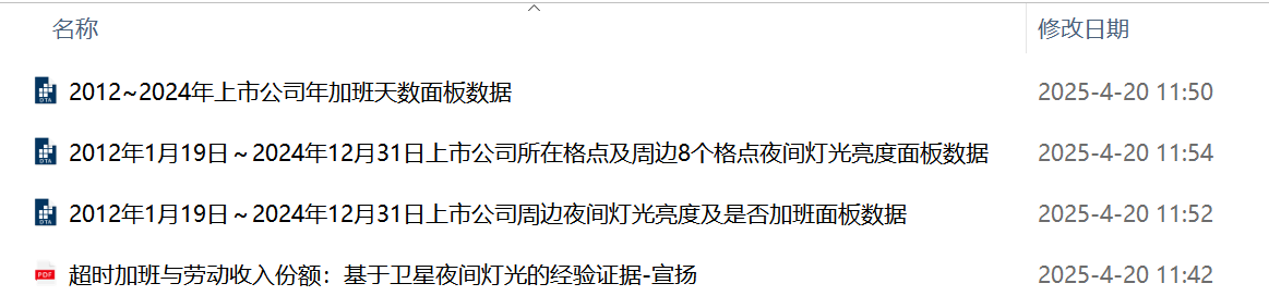 1、数据源名称:上市公司加班数据-基于夜间灯光数据