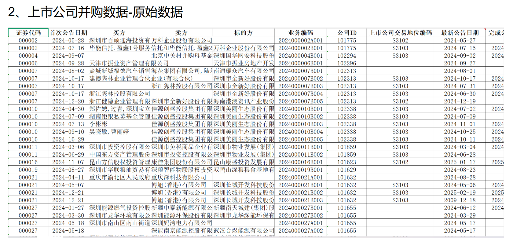 业务编码 | 公司ID | 上市公司交易地位编码 |