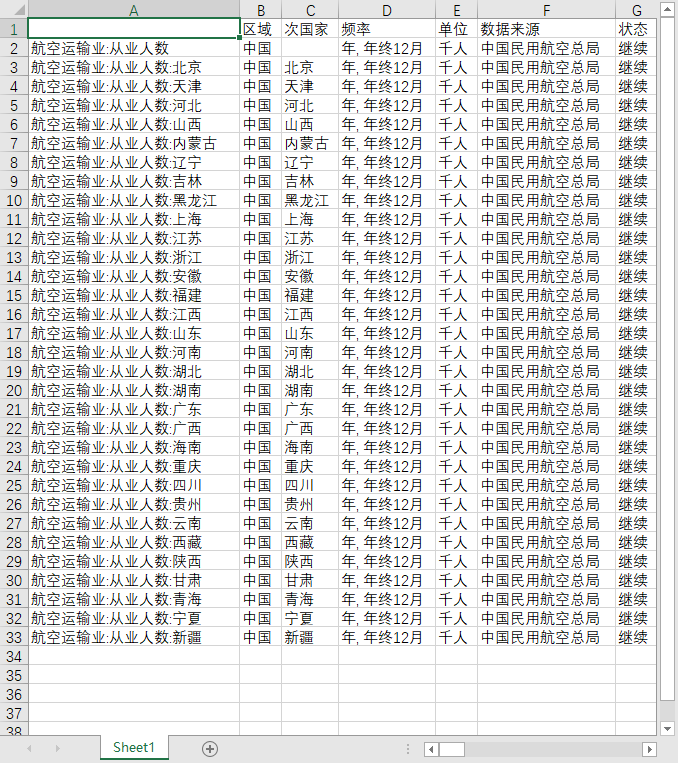 航空运输业:从业人数:四川
