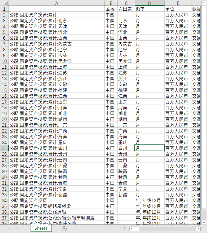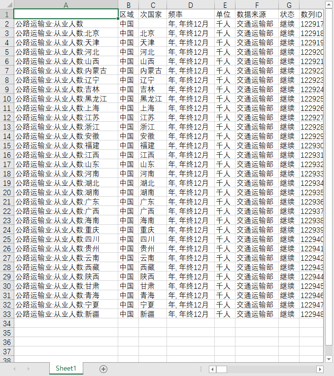 全国分省份地区公路运输业固定资产投资2001-202506、公路管道航空运输业从业人数1991-2023