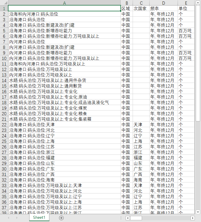 沿海港口:码头泊位:新增吞吐能力:万吨级及以上