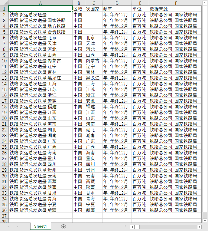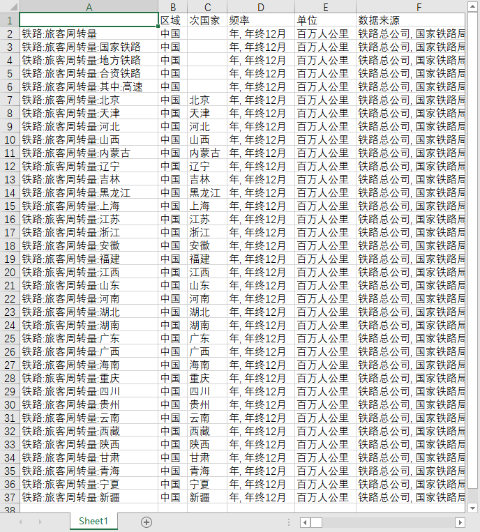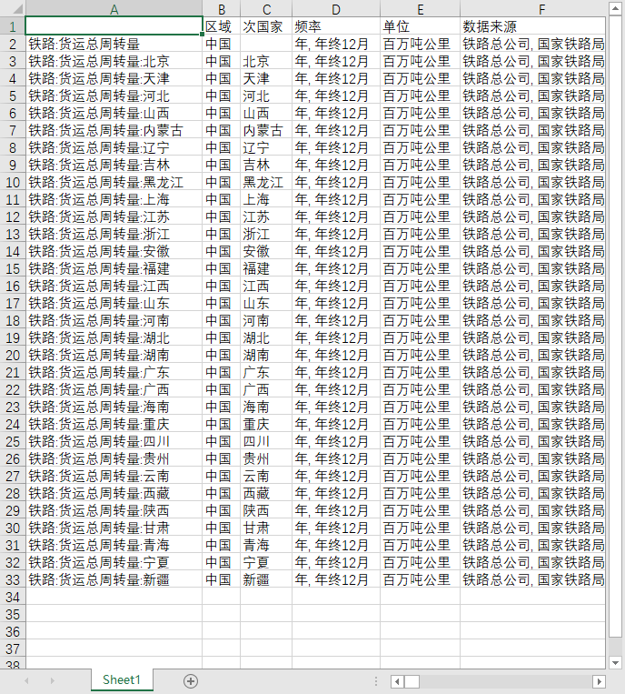 全国分省份地区铁路运输旅客货物运输量货运客运总周转量1981-2024