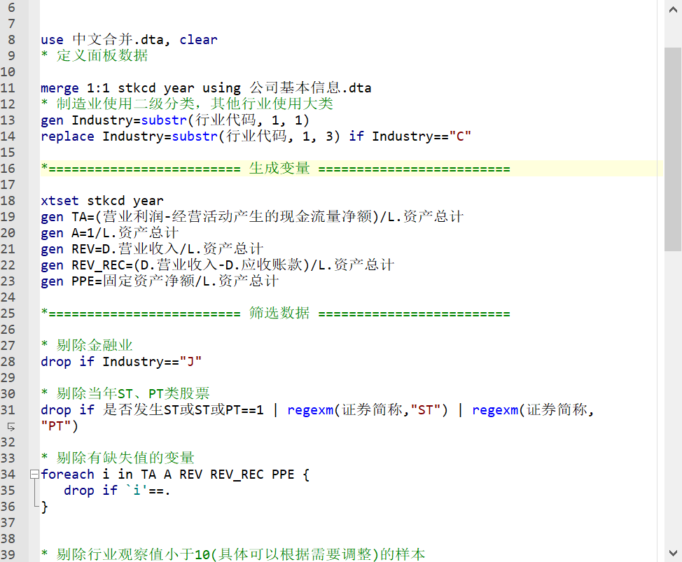 【应计盈余管理】最新2024!修正的琼斯模型Stata代码,非数据库直接下载,采用原始数据一步步计算得来