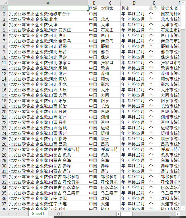 每个指标一个数据文件,每个数据文件包含近300个地级市城市: