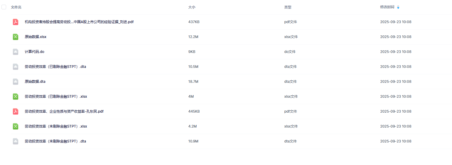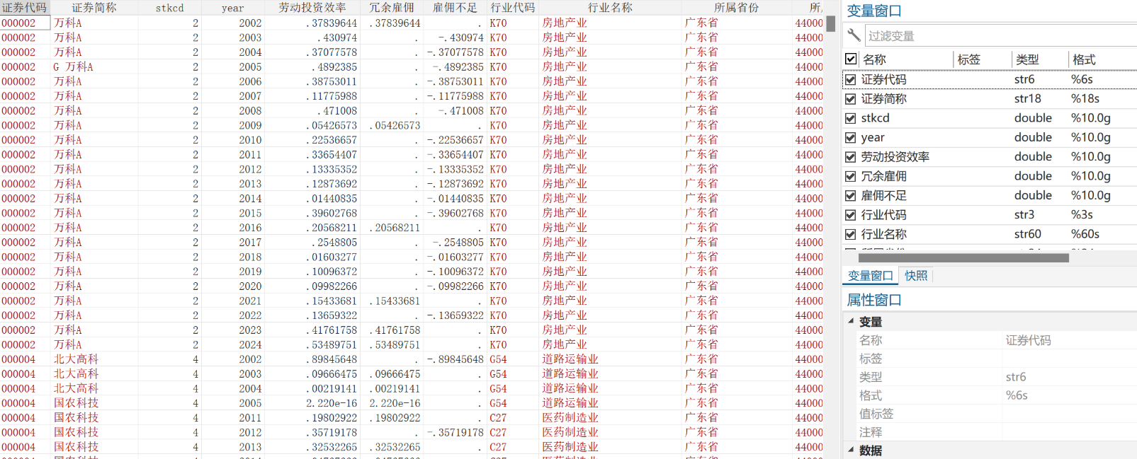 一、数据介绍数据名称:上市公司劳动投资效率数据+dofile