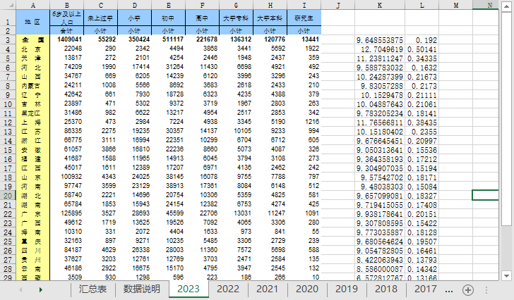 数据名称 中国省级平均受教育年限与学历结构