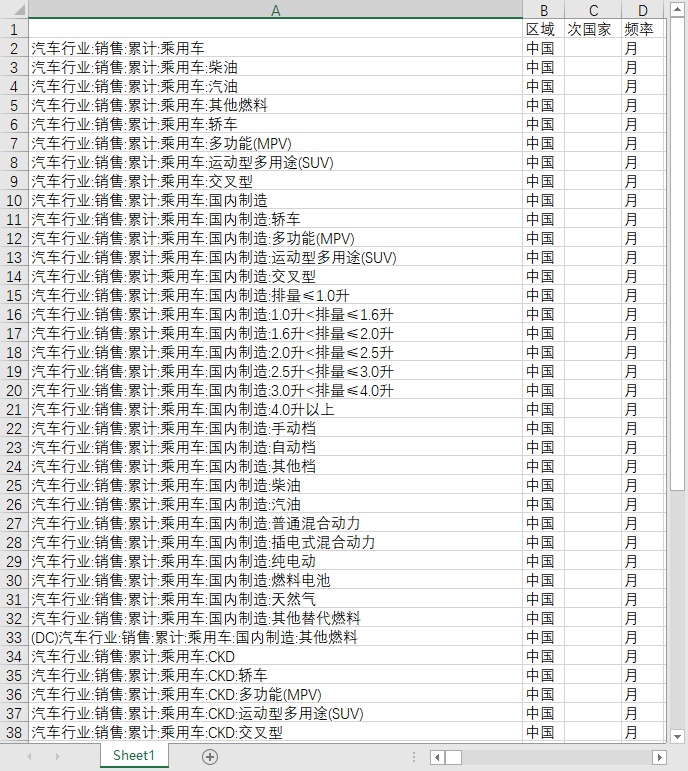 汽车行业:销售:乘用车:轿车:CKD:三厢四门