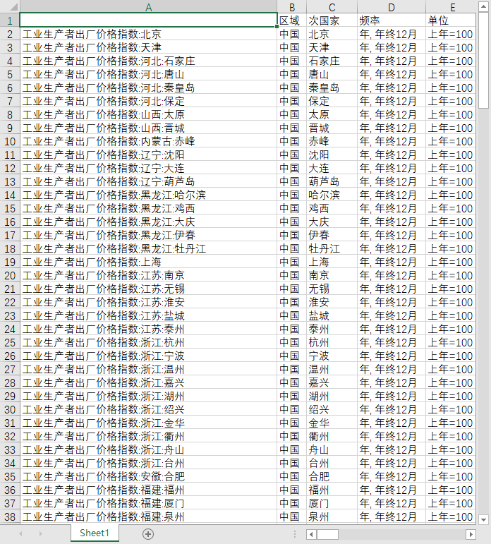 全国工业生产者出厂价格指数各地级市城市生产资料生活资料2010-2023部分到2024