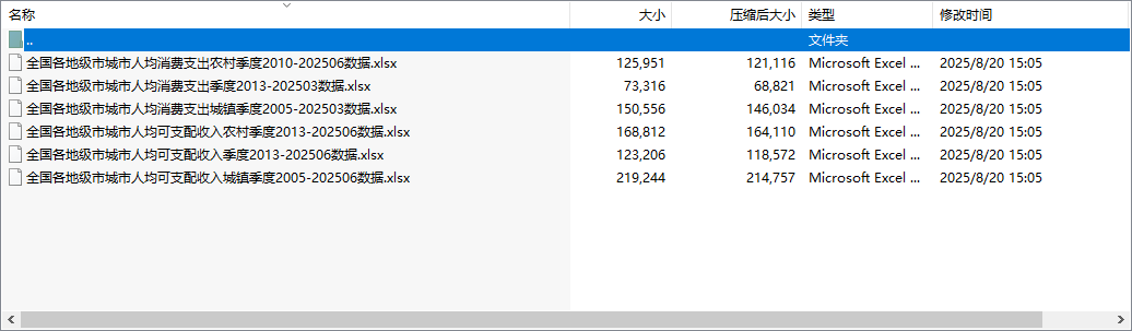 全国各地级市城市人均可支配收入、人均消费支出城镇农村季度2005-202503数据