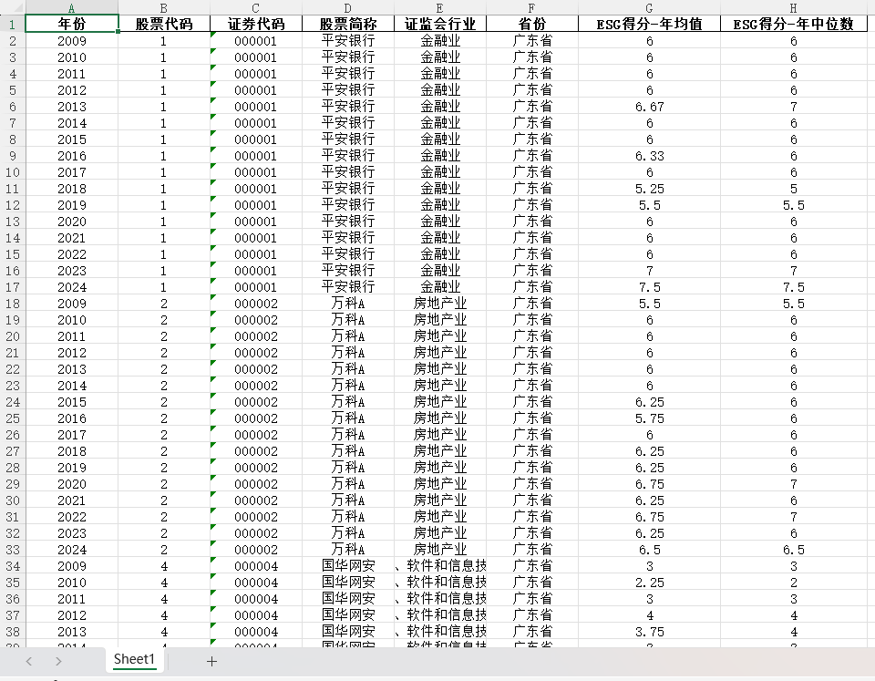 1、数据源名称:2025更新!A股上市公司华证ESG评级-得分数据(2009-2024.12)