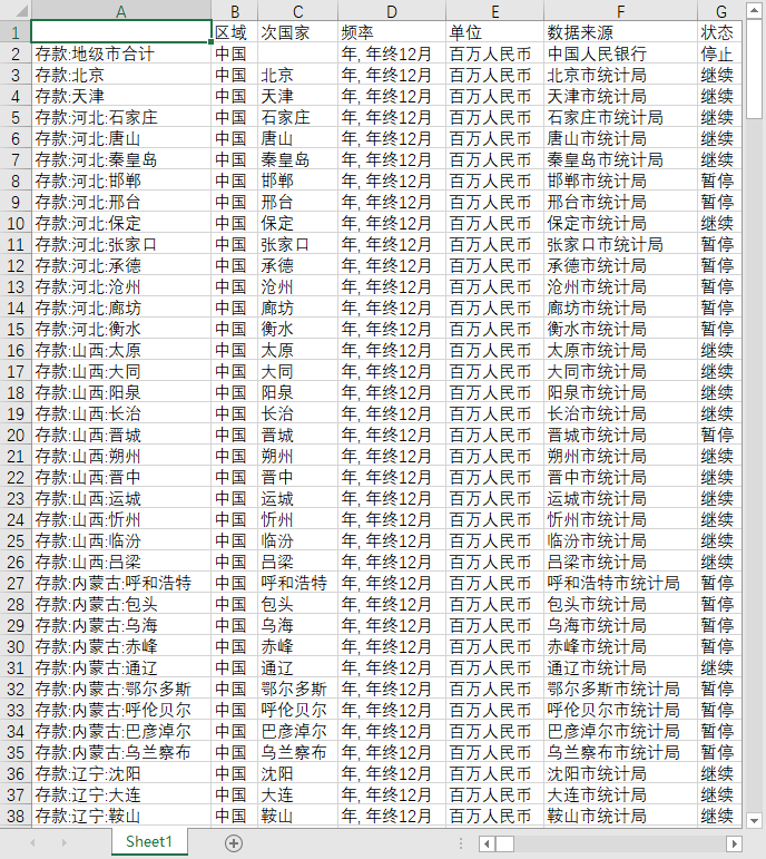 全国各地级区域州盟、地级市城市存款、贷款2003-2024年度数据