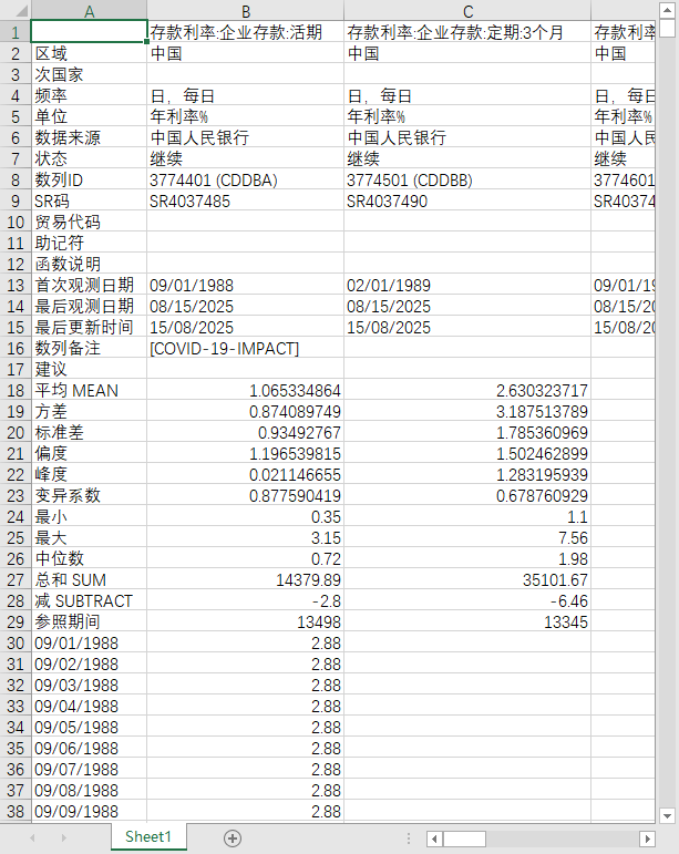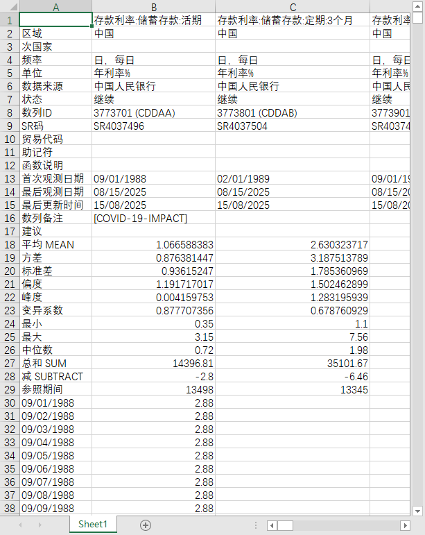 中国全国存款利率储蓄存款、企业存款1988-202508日度数据活期定期3个月6个月1年2年3年