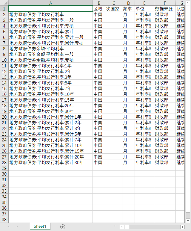 中国全国地方政府债券利率一般专项2008-202507月度数据1年2年到30年财政部