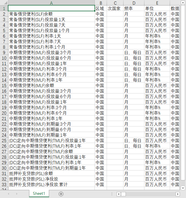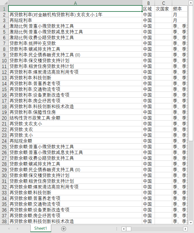 中国全国货币政策工具借贷便利2015-202507常备借贷便利(SLF)余额中期借贷便利(MLF)等中国全国结构性货币政策工具2022-202506季度再贷款利率煤炭清洁高效利用专项激励比例普惠小微贷款支持等