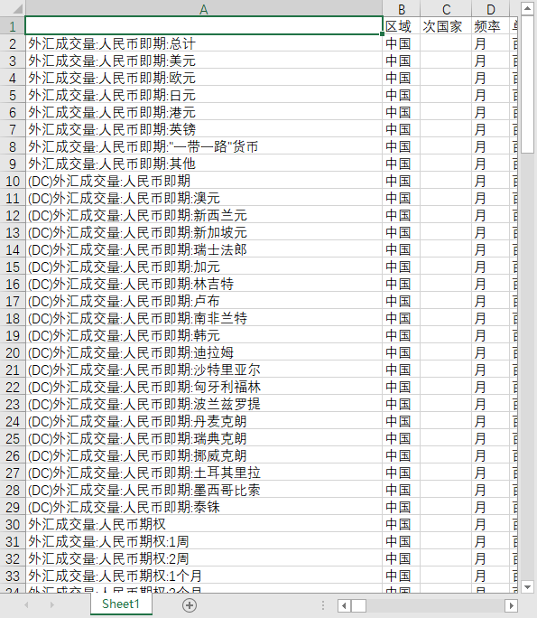 (DC)外汇成交量:人民币远期:USD/RMB:1个月