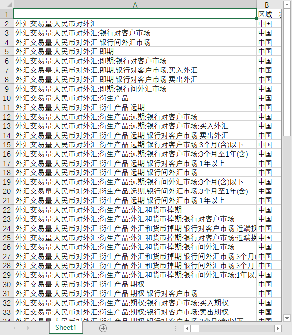外汇交易量:人民币对外汇:衍生产品:远期:银行间外汇市场:1年以上