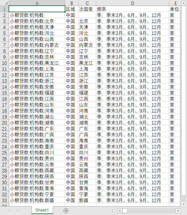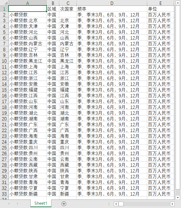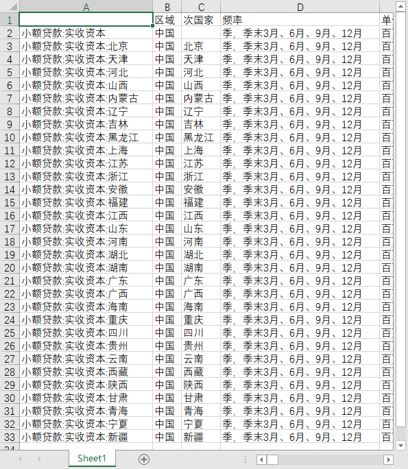 中国全国小额贷款机构数贷款金额从业人数实收资本分省份地区2010-202506季度数据