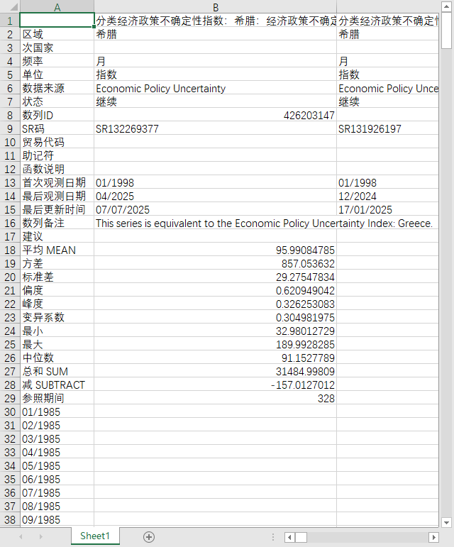 美国希腊日本货币政策经济政策货币政策贸易政策汇率政策不确定性指数1985-202507月度数据